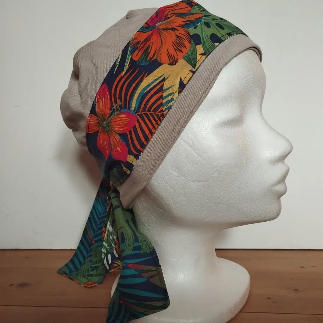 Ce modèle basique s’adapte à vos envies et besoins. Il peut servir de bonnet de nuit ou se porter sous un chapeau mais on peut aussi lui ajouter un bandeau simple ou encore le bandeau Vanessa !