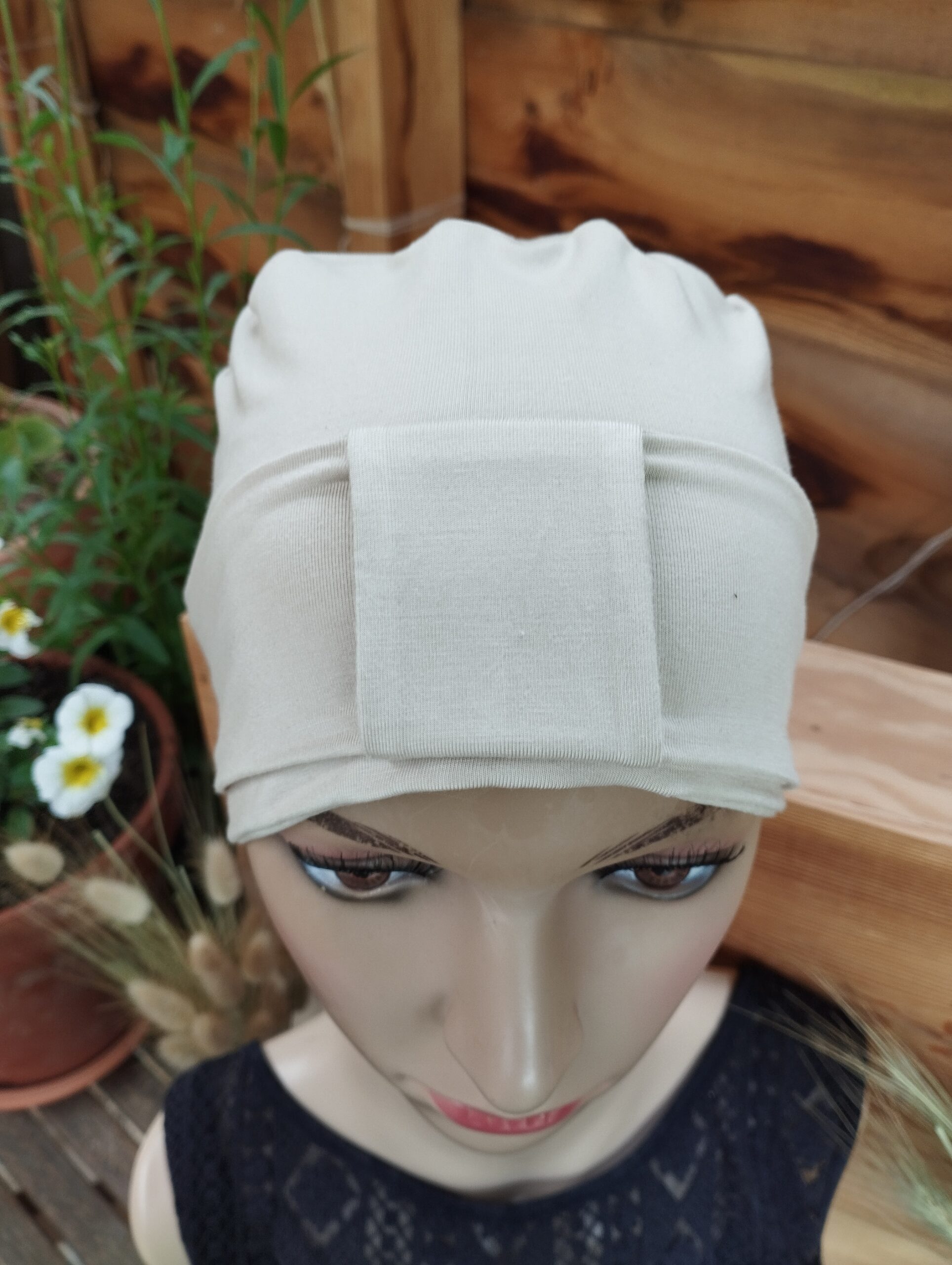Le modèle Sylvie est un bonnet avec un passant. Celui-ci est vendu sans bandeau.