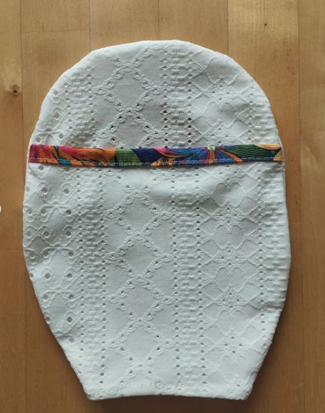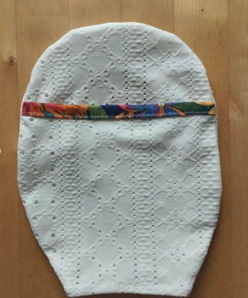 Voici le cache-poche Nicole, modèle qui peut se décliner en plusieurs matières : dentelle, tissu extensible, coton, etc.