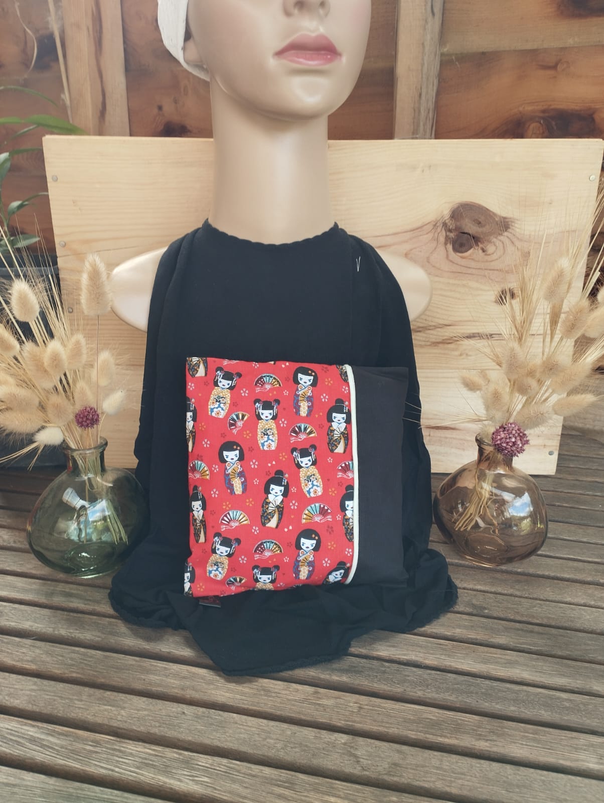 La base de la bouillotte en coton + noyaux de cerises